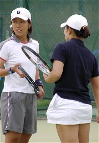 一方の女子は早々に準決勝を終えた梅原に対し、平田は相棒の都合によりシングルス決勝の前にダブルスの準々決勝を割り込ませなければならなかった。ダブルスが終わった時点ですでに体力の消耗はかなり進んでいた。30分の休憩後、今日3試合目のシングルス決勝を始めたが、もはや平田の足は満足に動かなかった。