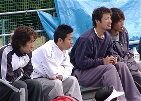 他人の試合を冷やかす早稲田軍団。ちょっとむさい。このあとこの4人でダブルス準々決勝を戦った。これじゃ、大学の部活と変わらんやんか!