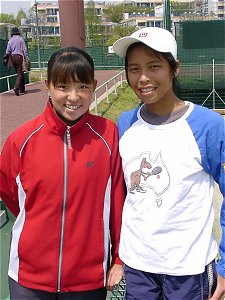 練習を終えた不田涼子ちゃんと台湾の新星スーウェイ。2人はジュニアの大会で何度も対戦してきた。コートを離れれば大の仲良しだ。スーウェイが涼ちゃんに私とはどういう関係か尋ねたら、説明に窮していた。友達でええやん!
