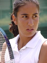 もう一方のシングルス準決勝は注目のマリア・シャラポワだ。噂にたがわぬ美少女であるが表情はそっけない。アンナちゃんもそうだが東欧の選手は人を寄せ付けないような雰囲気を漂わせている。今週はずっと風邪を引いていて体調が今一つ、鼻をかみながらの試合だった。プレイスタイルはただひたすらハードヒットするのみ。