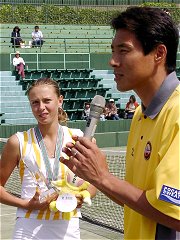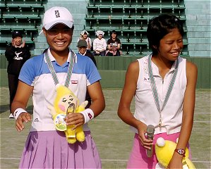大会最後の試合は唯一残った日本選手、不田涼子のダブルス決勝だ。残り3人は全て台湾選手となった。ダブルスでもスーウェイが非凡な才能を見せつけた。好きな選手はヒンギスというだけあって、ネット際のショットも多彩だ。ドロップショット、アングルショット、ロブ、スーウェイにボールが渡ると、知らないうちに不利な状況に追い込まれてしまう。