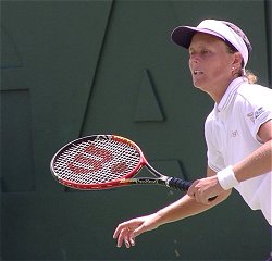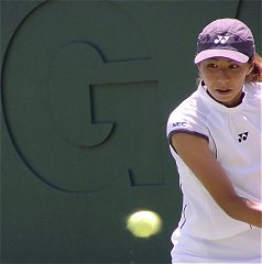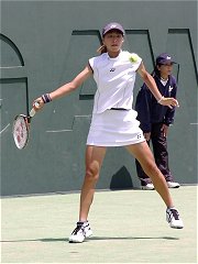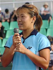 試合を見ながらどんなコメントにしようか思いあぐねていた。なぜならプリンのテニスはあまりに淡白で、しかもプレイスタイルはへなへなとした感じで捕らえどころがない。ネットへ出るでもなく、ストロークが得意というわけでもない。第1セットは浅越のちょっと深いストロークを簡単にミスし、あっさりとセットを失った。この時点では浅越の楽勝かと思われた。