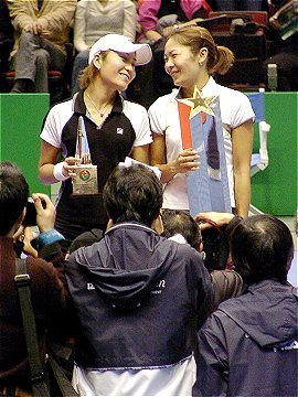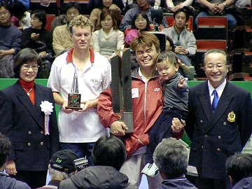 [ Back ] [ Index ] [ Next ] 2002年12月22日 イザワクリスマスオープン 最終日 女子シングルス決勝 小畑 沙織 6-1, 7-5 森上 亜希子 男子シングルス決勝 本村 剛一 6-3, 6-1 ダグ・ボハボーイ [ Back ] [ Index ] [ Next ]