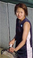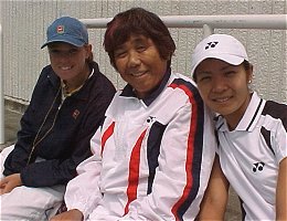センターコートのダブルスは面白かった。4人が4人とも十二分に持ち味を発揮した。第2セットのタイブレークでは、もっと見たくなったので第3セットにもつれ込むことを期待したほどだ。観客も満足したことだろう。特に4人の中で一番小柄なプラクシャのパワーには、みんな驚いた様子だ。プラクシャは今までワイネ・プラクスヤと読んでいたが、今回ドローの表記もアンパイアのコールもウィーネ・プラクシャであったので、これからはこちらを採用する。外国名の日本語表記はむずかしい。 浅越 しのぶ/吉田 友佳 6-4,7-6(5) ジャネット・リー/ウィーネ・プラクシャ
