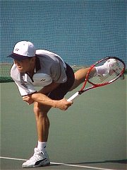 2000年 11月 12日 全日本テニス選手権最終日、昨日とうって変わって、底冷えのする1日となった。東京では12月上旬の気温、昼間でも13度までしか上がらなかったそうだ。寝ぼけたままで出発したため防寒に全く気を配るのを忘れてしまった。男子シングルス決勝を観たあと、次の女子ダブルス決勝の途中で、あまりの寒さに我慢できず、引き上げてしまった。 男子シングルス決勝は示唆に富んだ試合になった。權はほとんどつかみかけていた大魚をみすみす逃がしてしまった。私はひょっとしたら權が勝つかも知れないと予想していた。今大会、本村は全試合ストレートで勝ちあがっている。一見好調そうである。しかし私の頭の中には、先週の横浜チャレンジャー準決勝での負け方と昨日の金子戦での勝ち方が引っかかっていた。横浜チャレンジャーでは全く集中できないままずるずると負け、金子戦では勝ったものの今一つピリッとしなかった。 第1セット、本村は冒頭からブレークを許し、いやな立ち上がりだ。權は本村のバックに徹底してボールを集め、本村のフォアハンドを封じた。ストロークの主導権は終始權が握り、本村を振り回した。權が第1セットを先取。ここまでは私の予想通りだ。 第2セットに入ると本村が奮起、5−1とリードする。この時、權の気持ちはすでに第3セットに飛んでいた。このセットは獲られて仕方なし、体力を温存し第3セットで巻き返す。權のシナリオは、きっとこうであったに違いない。ところが、ここから權にとって予想もしないことが起きてしまう。本村が勝手にもたついて、セットを獲り切れないのだ。そうこうしている内になんと5ゲーム連取して、ついには6−5で逆転してしまう。しかもサービス・フォー・ザ・マッチだ。 ここで決める、權は急いでシナリオを書き換える。ところがこれが奈落へのシナリオになろうとは、思いもしなかっただろう。本村はここまで散々振り回されていた。おかげで邪念が振り払われ、ただボールを返すことだけに集中できるようになっていた。第12ゲームをブレークバックし、タイブレークももぎ取った時には、すっかり本村のストロークは蘇っていた。一方、權は温存するはずの体力を吐き出してしまっていた。