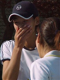 2000年 11月 10日 全日本テニス選手権第5日、休暇を取って観戦に来た。昨日は随分寒かったようだ。今日はそれほどではないが、少し冷え込む。第3試合の途中から小雨がぱらつき、センターコートの屋根は締められた。外のコートは近隣住民との申し合わせで11月以降は照明がつけられない。暗くなったら続行不能となる。今日は女子ダブルス準々決勝の1試合が1セットオールとなったところで、翌日に持ち越された。もう少し雨にたたられれば週末のテレビ中継にも影響が出るかも知れない。スケジュールに関してはまさに綱渡り状態の大会である。 今日は藤原里華、梅原幸恵、近藤大生、3人の試合に注目した。ご覧のように3試合とも判で押したように同じようなスコアになってしまった。 女子シングルス準決勝 井上 青香 6-3, 6-2 藤原 里華
