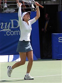 2001年 1月 14日 アディダス国際 第7日(最終日) シングルス優勝は地元のレイトン・ヒューイットとマルチナ・ヒンギス、スポンサーにとっては理想的な結末となった。優勝カップのプレゼンターにシドニーオリンピック競泳の英雄イアン・ソープが現れ、会場の興奮は最高潮に達した。アディダスはさぞかし溜飲を下げただろう。 女子シングルスの決勝はスリルに満ちた展開となった。1セットオール後の第3セット、常にダベンポートが先行しヒンギスが追いかける形になった。ヒンギスは決してあきらめることなく、辛抱強くダベンポートのボールを拾った。そして信じられないようなダベンポートのスマッシュミスを誘うなど、じわじわと挽回していった。開幕戦でセリーナとダベンポートを連破し、全豪オープンに向けて十分期待を抱かせる結果となった。 ![]()