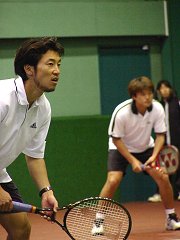 変更になった会場は、なんと石井弘樹プロの実家のプライベートコートだった。石井プロは見かけに寄らず(すまん)ボンボンなのかも知れない。
