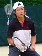 2001年 6月 10日 関東オープン決勝 金曜日、土曜日と風邪で寝込んでしまい、やっと今朝、平熱に下がった。体調に不安があったが久我山は近いこともあり、思わしくなければすぐ帰ればいいというつもりで、関東オープンに出かけた。実際に試合が始まり、頭を左右に振ってボールを追っていたら、頭がクラクラしてきた。これはやばいと思い、頭を動かさずに目だけでボールを追っていたら、今度は目が回った。というわけで今回はあまりまともなレポートができない。<前置きが長い 今回も何時に始まるか確認して行かなかったので、早めに出かけたが今度は10時始まりだった。結局小一時間、時間を潰さなければならなかった。男子と女子の決勝は同時に始まった。どちらを観ようか迷ったが、今回は男子決勝を見た。宮地の復調ぶりと宮尾のプレイを見たかった。