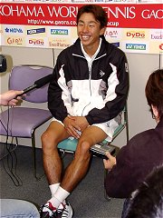 さて注目の日本選手同士のシングルス決勝やいかに! 昨日は本村自身「サーフェスからいって貴男有利でしょう。」と言っていたが、これは単なる牽制だった。本村は第1セットこそ一方的に獲られたが、第2セット以降はお互い一歩も譲らず、息の抜けない展開となった。第3セット第10ゲームで先にマッチポイントを握ったのは本村だったが惜しくも生かせなかった。タイブレークに入った時には、もはや勝敗は二の次になっていた。
