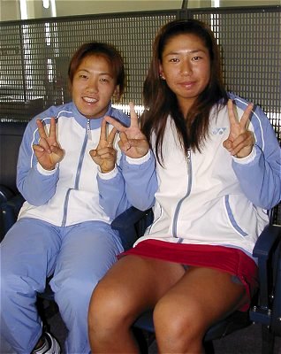 2001年 12月 8日 第16回 テニス日本リーグ 1stステージ 冬恒例、実業団の日本一を決める日本リーグが始まった。男女とも2つのグループに分かれ、それぞれのグループで総当りのリーグ戦を行い、上位2チームが決勝トーナメントに進むことができる。リーグ戦は1stステージと2ndステージの2回に分けて全国各地で行なわれ、決勝トーナメントは東京体育館で行なう。今日の横浜国際プールは、女子のブルーブロックの試合が行われた。このブロックは北日本物産、荏原、島津製作所、九州電力、中国電力、東京海上の6チーム、実力的には北日本物産、荏原、島津製作所が上位チームだ。決勝トーナメントに進むのはこの内の2チームであることは間違いないだろう。