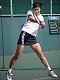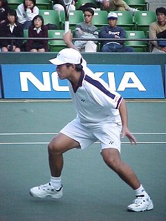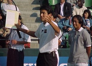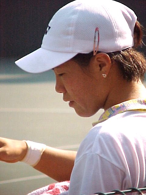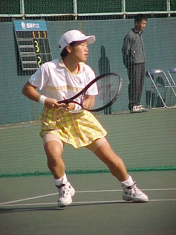 (1998/11/14) 有明テニスの森 土曜日、男子決勝の日でしたが、湘南工科大付属高校の2年生、藤原里華ちゃんがベスト4に残っていたので、こちらのゲームを中心に観戦しました。対戦相手は小畑沙織ちゃん、対照的な2人です。沙織ちゃんはいつもやる気があるのかないのか分からないような、不機嫌そうな顔でゲームを進めます。かたや、里華ちゃんはファイトの塊、体格は小さいのですがチャンスがあればネットをとるという攻撃的なテニスです。結果は、沙織ちゃんが6−2、7−5のストレートの勝利、そのまま決勝でも岡本聖子ちゃんを破り、初優勝を果たしました。 |