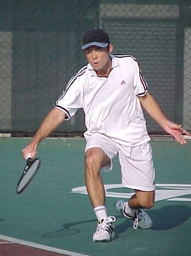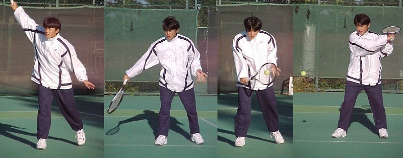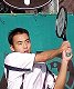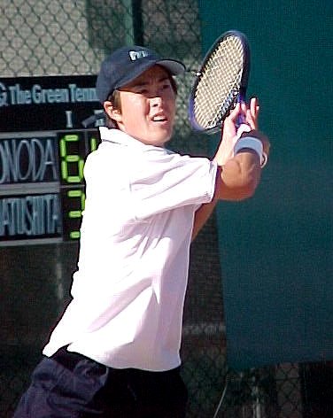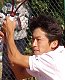 ダブルス準決勝に残った石井弥起くんと佐藤博康くんです。弥起くんは高田パパと組んで茶圓・岩見組に快勝。佐藤くんは松下晃くんと組んでアメリカペアに 7-6,7-6 で惜敗。 |