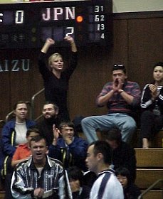 人数は少ないがド迫力のウズベキスタンの応援。金髪のねえちゃんが大声を上げ、床を踏み鳴らします。