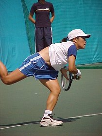 私なりに気づいたポイントは2つ、決め球とセカンドサービス。相手のボールが短く浮いた時、その球を1発で決められず、粘られた末に逆襲を食らうというパターンが再三ありました。このレベルの大会で勝ちあがるには、ここぞという時に、一発で決められないと苦しいでしょう。もう少しフラットにするかハードヒットする必要があるように感じました。セカンドサービスは、相手に狙われていました。もう少し深さとスピードが必要でしょう。