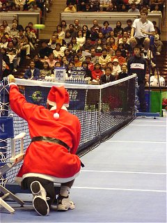 クリスマスなのでネットアンパイアもサンタの衣装でジャッジ。