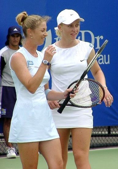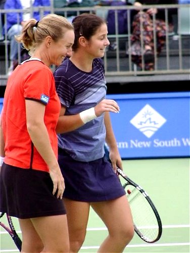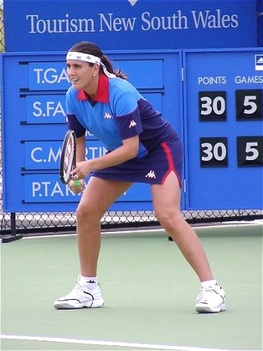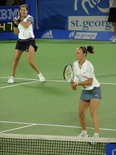 この日のベストマッチは文句なくマルチナのダブルスだった。相手はウィリアムス姉妹という、なかなか見られないカードだ。スコアは 6-4, 3-6, 7-6 でマルチナ/モニカ組がきわどい接戦を制した。3つのマッチポイントを凌いでの勝利だった。