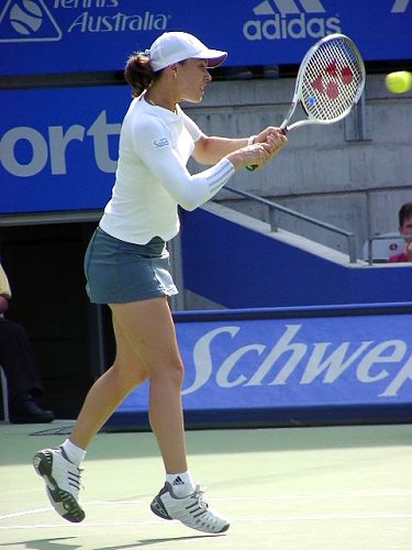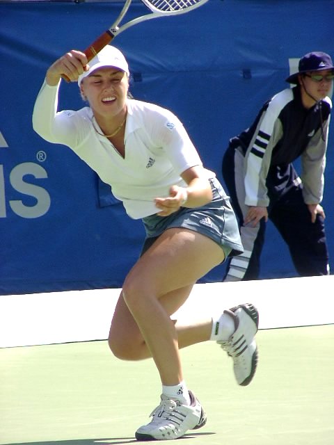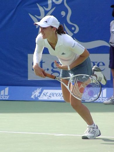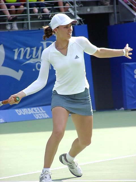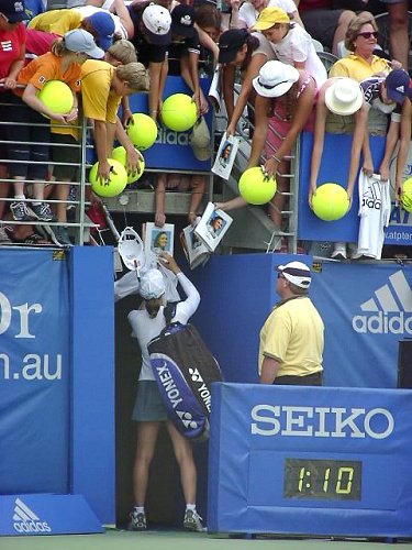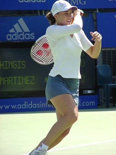 第2試合にマルチナ登場。この試合どうひいき目にみてもマルチネスに勝ち目はない。マルチネスはかつての伊達、現在のマルチナのようにテンポの速い選手にめっぽう弱い。ベースラインでじっくりとラリーを続けながらチャンスを見出していく、攻めの遅いタイプだ。試合開始前からマルチネスの目が怯えていたように見えたのは私だけではないだろう。予想通り試合は一方的になった。縦横無尽、やりたい放題とはこのこと、マルチナは第2セットではほとんどのサービスゲームでサーブ&ボレーを試した。