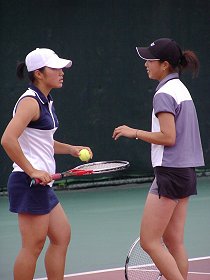 女子シングルスは私の同郷(岡山)である五藤かおりに注目した。第1セットはあっさりとられたが、第2セットは常に先行し、フルセットに入るかと思われた。しかし北崎にタイブレークに持ち込まれ、反撃を許してしまった。