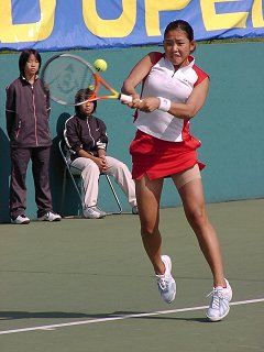 意外にも試合はかなり一方的な展開になってしまった。今日の中村はストロークが不安定で粘りがなかった。一方、井上はコースをよく読み辛抱強くボールを拾い、中村のミスを誘った。唯一、中村にチャンスがあったのは第2セット、2−1とリードしたところだった。ここで絶好のブレークチャンスを逃してしまった。まあ、こんな日もあるだろう。