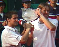 USメンズ・クレイコート・チャンピオンシップの決勝ではマイケル・チャンとジム・クーリエの顔合わせ。第1シードと第3シードの組み合わせとはいえ、まだまだ老け込んで欲しくない2人なのでうれしい限りです。ジャパンオープンで優勝したパベルは準決勝でクーリエに敗退。