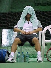 2000年 11月 12日 全日本テニス選手権最終日、昨日とうって変わって、底冷えのする1日となった。東京では12月上旬の気温、昼間でも13度までしか上がらなかったそうだ。寝ぼけたままで出発したため防寒に全く気を配るのを忘れてしまった。男子シングルス決勝を観たあと、次の女子ダブルス決勝の途中で、あまりの寒さに我慢できず、引き上げてしまった。 男子シングルス決勝は示唆に富んだ試合になった。權はほとんどつかみかけていた大魚をみすみす逃がしてしまった。私はひょっとしたら權が勝つかも知れないと予想していた。今大会、本村は全試合ストレートで勝ちあがっている。一見好調そうである。しかし私の頭の中には、先週の横浜チャレンジャー準決勝での負け方と昨日の金子戦での勝ち方が引っかかっていた。横浜チャレンジャーでは全く集中できないままずるずると負け、金子戦では勝ったものの今一つピリッとしなかった。 第1セット、本村は冒頭からブレークを許し、いやな立ち上がりだ。權は本村のバックに徹底してボールを集め、本村のフォアハンドを封じた。ストロークの主導権は終始權が握り、本村を振り回した。權が第1セットを先取。ここまでは私の予想通りだ。 第2セットに入ると本村が奮起、5−1とリードする。この時、權の気持ちはすでに第3セットに飛んでいた。このセットは獲られて仕方なし、体力を温存し第3セットで巻き返す。權のシナリオは、きっとこうであったに違いない。ところが、ここから權にとって予想もしないことが起きてしまう。本村が勝手にもたついて、セットを獲り切れないのだ。そうこうしている内になんと5ゲーム連取して、ついには6−5で逆転してしまう。しかもサービス・フォー・ザ・マッチだ。 ここで決める、權は急いでシナリオを書き換える。ところがこれが奈落へのシナリオになろうとは、思いもしなかっただろう。本村はここまで散々振り回されていた。おかげで邪念が振り払われ、ただボールを返すことだけに集中できるようになっていた。第12ゲームをブレークバックし、タイブレークももぎ取った時には、すっかり本村のストロークは蘇っていた。一方、權は温存するはずの体力を吐き出してしまっていた。