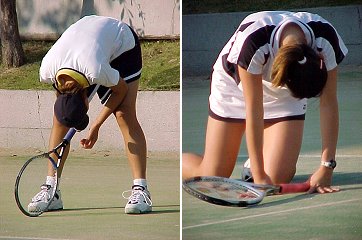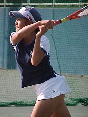 2000年 11月 23日 笹子トンネルを抜けると快晴だった。あまり気温は上がらないという予報に、ひざ掛けを2枚用意し、万全の防寒対策をして出掛けた。しかし1日中快晴で日なたは暖かく、最後まで使うことはなかった。えてして、こんなもんだ。 今日は国内で開催される20世紀最後の国際大会、ルネサンス国際女子エストTC甲府オープンの観戦だ。直前になって外国選手の出場取り止めが相次ぎ、本戦に出場した外国選手は韓国のオー・ユンミひとりだけとなった。主催者はすでに地元マスコミに対して、今年は大勢の外国選手が出場するとアナウンスしていたため、観客以上に落胆は大きい。ともあれこれで多くの日本選手にWTAポイントが得られるチャンスが増えたことも事実だ。もらえるものはもらえる時にもらっておこう。 第1シードは昨年のディフェンディングチャンピオン、梅原幸恵だ。金網越しに写真を撮るのは煩わしいので今日は写真も撮らず、じっくり梅原のシングルス2回戦を観戦した。対戦相手はただひとりの外国選手、オー・ユンミだ。4−2、4−0、4−2のストレートセットで勝った。はじめて観る4ゲームショートセット制の試合だ。1セットが6ゲーム制より2ゲーム少なく、その代わり最長で5セット行なう。3セット先取した方が勝ちだ。