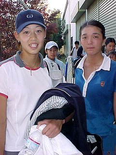 2000年 11月 10日 全日本テニス選手権第5日、休暇を取って観戦に来た。昨日は随分寒かったようだ。今日はそれほどではないが、少し冷え込む。第3試合の途中から小雨がぱらつき、センターコートの屋根は締められた。外のコートは近隣住民との申し合わせで11月以降は照明がつけられない。暗くなったら続行不能となる。今日は女子ダブルス準々決勝の1試合が1セットオールとなったところで、翌日に持ち越された。もう少し雨にたたられれば週末のテレビ中継にも影響が出るかも知れない。スケジュールに関してはまさに綱渡り状態の大会である。 今日は藤原里華、梅原幸恵、近藤大生、3人の試合に注目した。ご覧のように3試合とも判で押したように同じようなスコアになってしまった。 女子シングルス準決勝 井上 青香 6-3, 6-2 藤原 里華