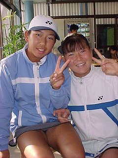 ダブルス決勝 岡本 聖子/田口 景子 3-5, 4-1, 5-4(4), 4-1 新井 由樹/飯島 久美子 昨年の決勝と3人まで、同じメンバーとなった。昨年、新井は高校の先輩の手塚怜美と組んで出場した。岡本/田口ペアに大逆転を喰らい、試合後号泣していたのが初々しかった。今年は学校こそ違うがいつも組んでいる飯島とだ。第1セットは歯車がかみ合って、先取した。しかし第2セットから岡本/田口ペアが巧さを発揮した。若い高校生ペアが勢い込んでネットへ詰めると、面白いようにロブが頭の上を抜けていった。