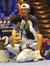 2000年 12月 24日 イザワクリスマスオープン、20世紀最後のトーナメントは本村剛一の優勝で幕を閉じた。全日本テニス選手権と同じ顔合わせになったが、試合の流れはかなり違ったものになった。權は全日本のスタミナ切れを反省してか、より仕掛けを早くしてきた。バックハンドはスライスで繋ぐことを少なくし、トップスピンで応酬した。この作戦は悪くなかったが、計算違いが一つあった。本村が調子の良い時の状態に戻っていたことだ。ストロークはかすれることなく厚くあたり、本来のスピードが蘇っていた。試合はフルセットになったが、本村には余裕があった。 女子ダブルス決勝