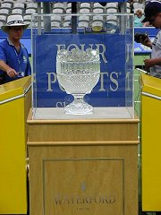 センターコート、チェアアンパイアの後ろに鎮座まします優勝カップ。