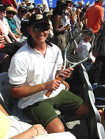 2001年 1月 14日 アディダス国際 第7日(最終日) シングルス優勝は地元のレイトン・ヒューイットとマルチナ・ヒンギス、スポンサーにとっては理想的な結末となった。優勝カップのプレゼンターにシドニーオリンピック競泳の英雄イアン・ソープが現れ、会場の興奮は最高潮に達した。アディダスはさぞかし溜飲を下げただろう。 女子シングルスの決勝はスリルに満ちた展開となった。1セットオール後の第3セット、常にダベンポートが先行しヒンギスが追いかける形になった。ヒンギスは決してあきらめることなく、辛抱強くダベンポートのボールを拾った。そして信じられないようなダベンポートのスマッシュミスを誘うなど、じわじわと挽回していった。開幕戦でセリーナとダベンポートを連破し、全豪オープンに向けて十分期待を抱かせる結果となった。 ![]()