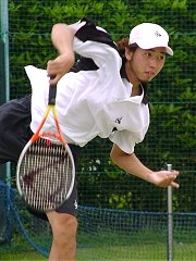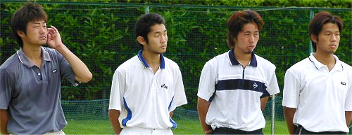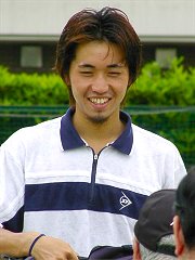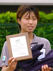 2001年 6月 10日 関東オープン決勝 金曜日、土曜日と風邪で寝込んでしまい、やっと今朝、平熱に下がった。体調に不安があったが久我山は近いこともあり、思わしくなければすぐ帰ればいいというつもりで、関東オープンに出かけた。実際に試合が始まり、頭を左右に振ってボールを追っていたら、頭がクラクラしてきた。これはやばいと思い、頭を動かさずに目だけでボールを追っていたら、今度は目が回った。というわけで今回はあまりまともなレポートができない。<前置きが長い 今回も何時に始まるか確認して行かなかったので、早めに出かけたが今度は10時始まりだった。結局小一時間、時間を潰さなければならなかった。男子と女子の決勝は同時に始まった。どちらを観ようか迷ったが、今回は男子決勝を見た。宮地の復調ぶりと宮尾のプレイを見たかった。
