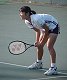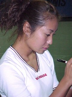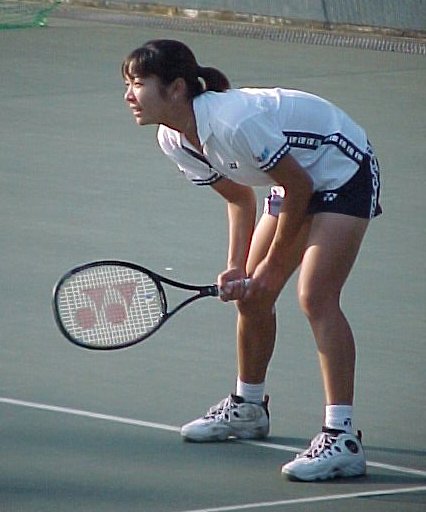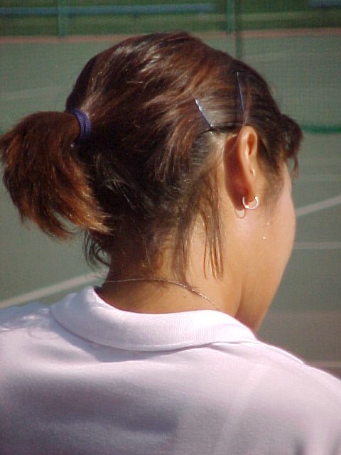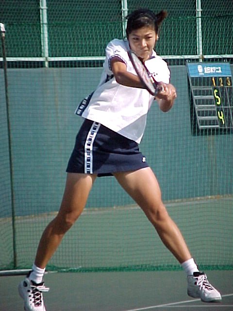 (1998/11/14) 有明テニスの森 土曜日、男子決勝の日でしたが、湘南工科大付属高校の2年生、藤原里華ちゃんがベスト4に残っていたので、こちらのゲームを中心に観戦しました。対戦相手は小畑沙織ちゃん、対照的な2人です。沙織ちゃんはいつもやる気があるのかないのか分からないような、不機嫌そうな顔でゲームを進めます。かたや、里華ちゃんはファイトの塊、体格は小さいのですがチャンスがあればネットをとるという攻撃的なテニスです。結果は、沙織ちゃんが6−2、7−5のストレートの勝利、そのまま決勝でも岡本聖子ちゃんを破り、初優勝を果たしました。 |