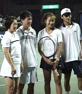 第73回全日本テニス選手権大会 ![]() 対照的な福田兄妹(姉弟?)と たかひろ・アッコちゃんペア 片や苦節ん年、片やパッパラパー! |
