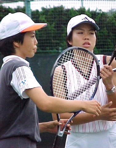 最終セット、井上姉妹せっかく5−5まで盛り返したのに、おしかった。ダブルスでは妹の摩衣子ちゃんがおねえさんの青香ちゃんをリードしていました。