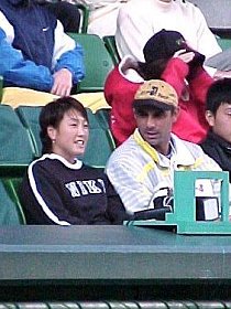 おやっ、ピストレッジコーチと愛ちゃんがなかよく観戦。あとで聞いたところによると「チーム愛」とコーチ契約したそうです。それで納得。帰りがけにも、二人で練習していました。