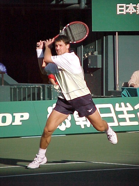 マイケル・チャン 7-6, 6-7, 7-6 マイケル・ヒル こりゃ、すごいゲームでした。全てがタイブレーク。特に第3セット、チャンが2つマッチポイントを取られましたが、これをはね返し逆転しました。でも、マイケルも2回戦で敗退。最近、なかなか勝ち残れません。しろうと目で見ると、すごいプレーなんですがねえ...