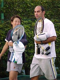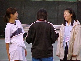この日は朝から夕方まで小浦監督率いるフェドカップチームが練習していました。メンバーは佐伯美穂ちゃん、浅越しのぶちゃん、小畑沙織ちゃんです。