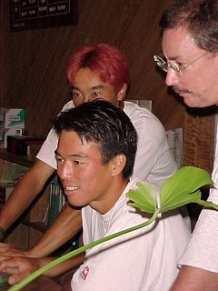 フロントにおいてあるMACで、なにやら楽しそうにホームページを見ている3人。なんのページを見てんだか。