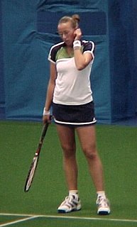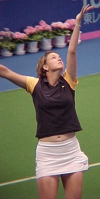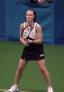 シングルス1位から4位、ダブルス1位から6位までが揃った、豪華な大会となりました。全豪オープンに優勝したばかりのマルチナの充実ぶりが目立ちました。今回のスナップは土曜日の準決勝の模様です。インドアは光量が不足しているので、デジカメでは動きのある写真は撮れません。あしからず。