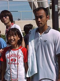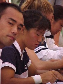 日本初お目見えのモニク・ビーリー、身長177cm、14歳の大型新人です。ヨネックスフェスティバルではアンナのピンチヒッターとして登場です。茶圓くんがヒッティングパートナーを努めました。随所に鋭いショットを放ち、大物の片鱗を見せていました。終始笑顔を振りまき、明るい娘でした。実際の試合ではどんなプレイを見せるのでしょうか。楽しみです。