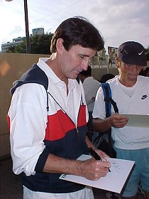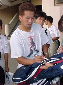 麻薬所持で捕まったスーパーの女主人...ではありません。モニクのママです。サインにも記念撮影にも気さくに応じていました。そのうち、テレビに映る関係者席の中に、いつも見ることになるのでしょうか。