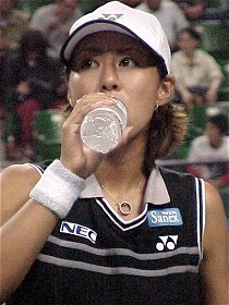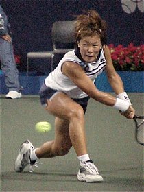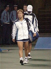 今日はセンターコート第3試合の浅越しのぶ vs 藤原里華の1回戦に注目した。浅越しのぶは最新ランキングでついに69位まで上がってきた。プリンセスカップで杉山愛に勝ったのがきいた。浅越は昨日まで虎視眈々と上位を食おうと狙っていた。今日は年下の藤原里華が牙をむいて浅越を狙っている。因果は巡る。