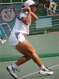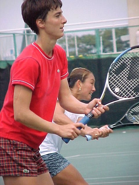 チェコの17歳、ダニエラ・ベダノワ。どこかで見たことがあると思ったら、昨年のスーパージュニア優勝者だ。すでにジュニアは卒業、からだは細いがストロークはしっかりしている。上に上がっていくのは間違いない。