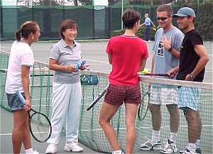 練習の合間に談笑するジュリー&愛ファミリー。ダブルスの練習もたっぷりしていた。