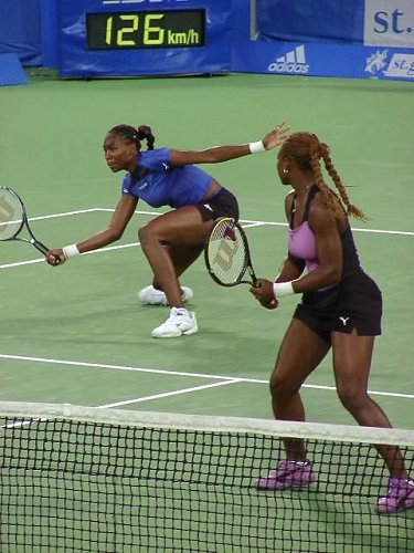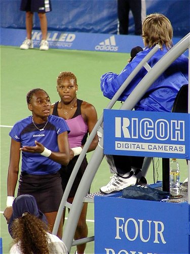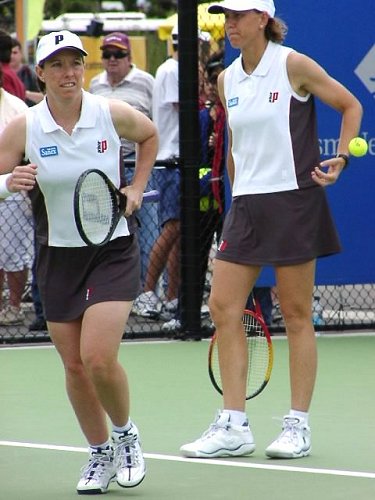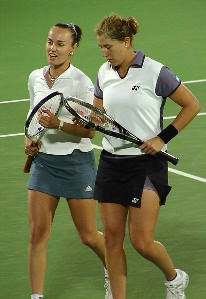 この日のベストマッチは文句なくマルチナのダブルスだった。相手はウィリアムス姉妹という、なかなか見られないカードだ。スコアは 6-4, 3-6, 7-6 でマルチナ/モニカ組がきわどい接戦を制した。3つのマッチポイントを凌いでの勝利だった。