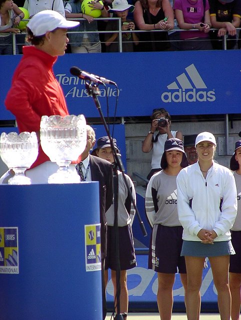 男子シングル決勝はレイトン・ヒューイット対マグナス・ノーマン。ヒューイットに対する地元ファンの応援はすさまじいものがある。ヒューイットは地元の応援に後押しされ、6−4、6−1で意外にあっさりと今大会2連覇を達成した。ヒューイットの調子が良かったのは事実だが、ノーマンもスコアほど悪くはなかった。いずれにしろ、この2人は全豪オープンの優勝候補には違いない。